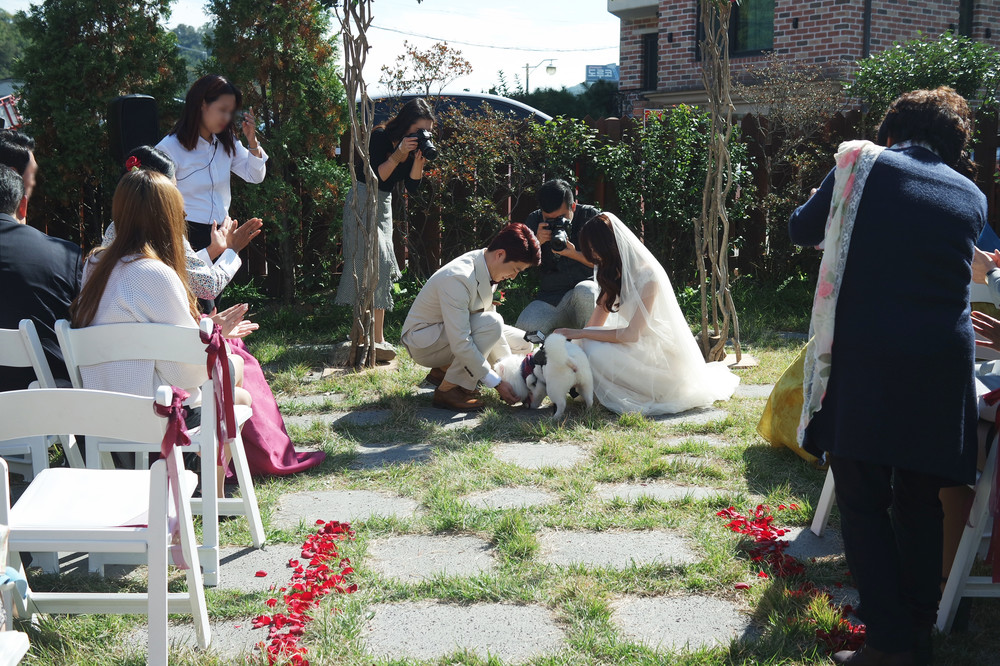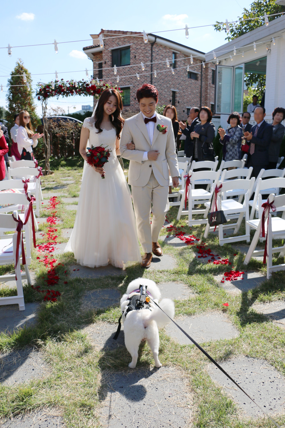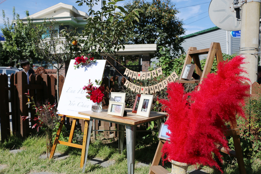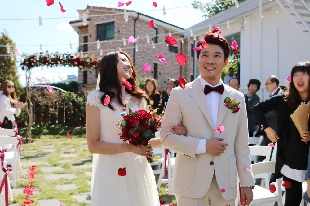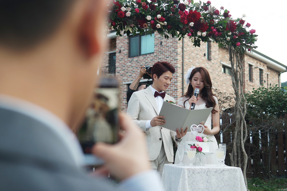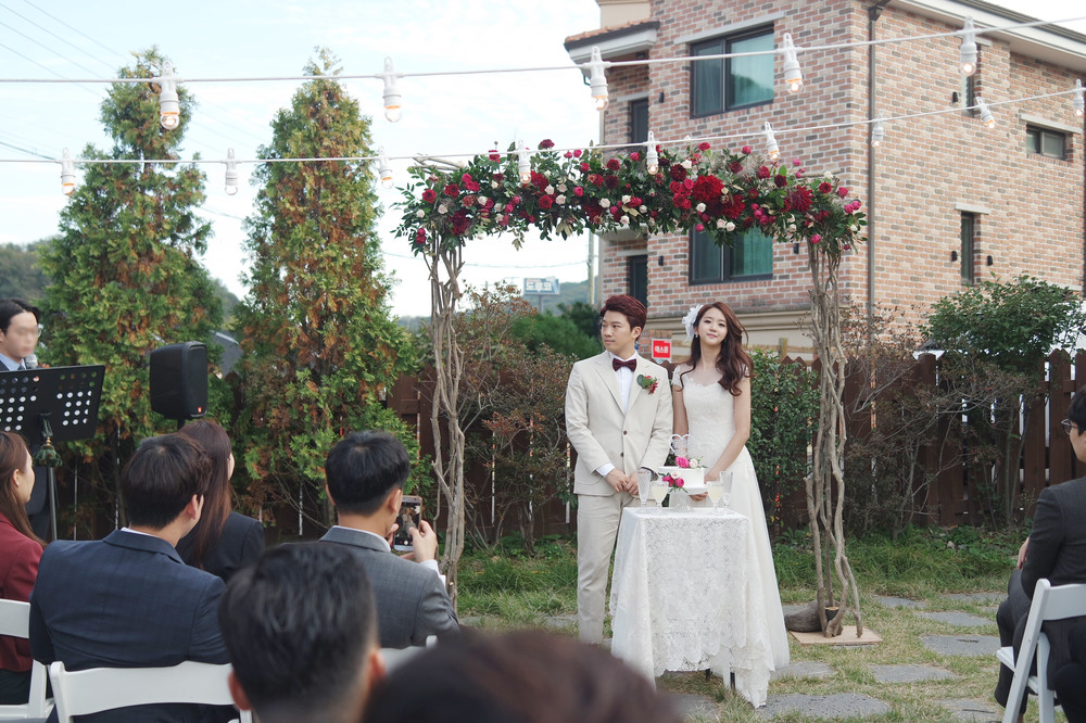 변하고 있는 결혼 문화를 반영하고 있는 것 중 하나는 1부와 2부를 나누어 '가족'을 초대한 결혼식과 '친구'들을 초대하는 결혼식을 진행하는 점입니다. '가족'들을 초대한 자리의 결혼식은 비교적 조용한 분위기에 치뤄지는 대해 비해, '친구'들을 초대한 자리의 결혼식은 즐거운 파티 분위기의 결혼식으로 치루어 집니다. 대홍관을 하루 통틀어 대관하신 신랑신부님은 두번의 결혼식을 치루기 위해 직접 준비하신 소품들과 함께 더욱 실속있게 결혼식을 준비하셨습니다.