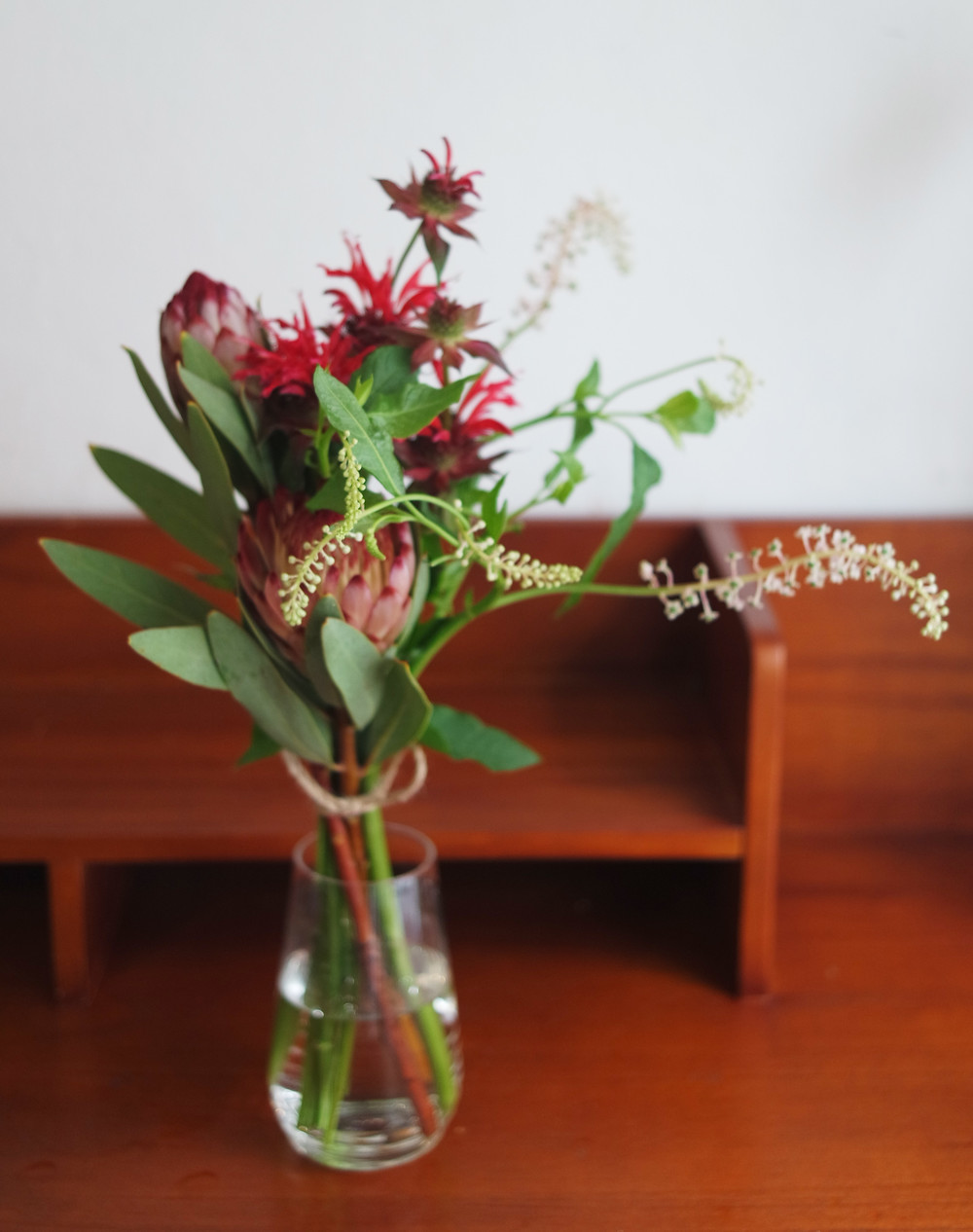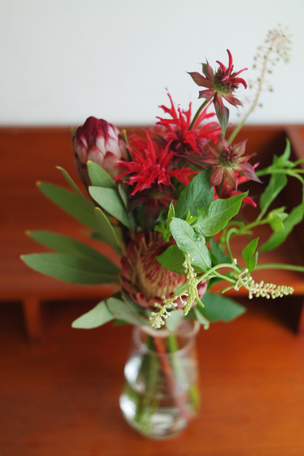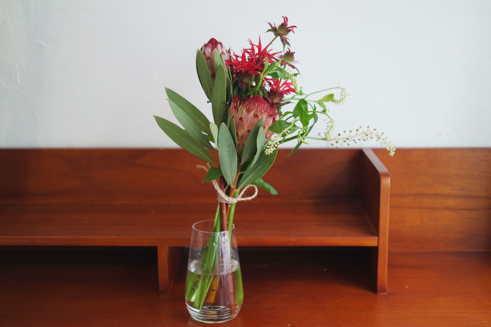 독특하고 강렬한 컬러감의 꽃들과 프로테아로 구성된 미니번치입니다.