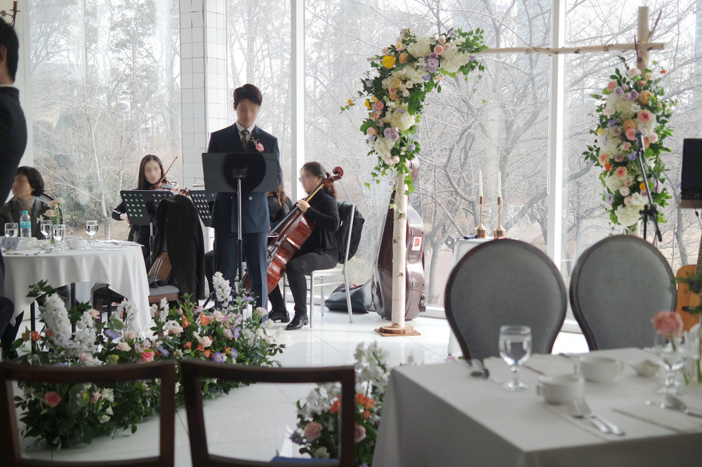 *해당 결혼식은 웨딩 데커레이션의 구성 중 공간에 적합한 요소들만 선택하여 연출된 결혼식입니다.