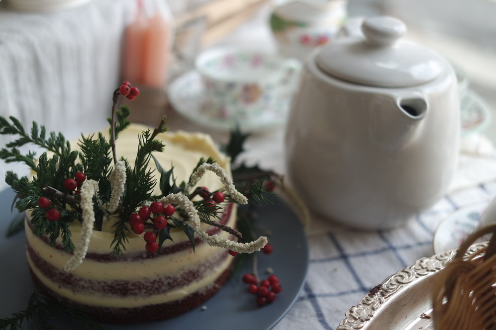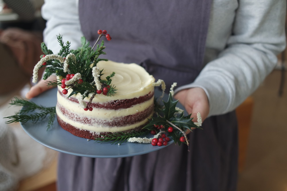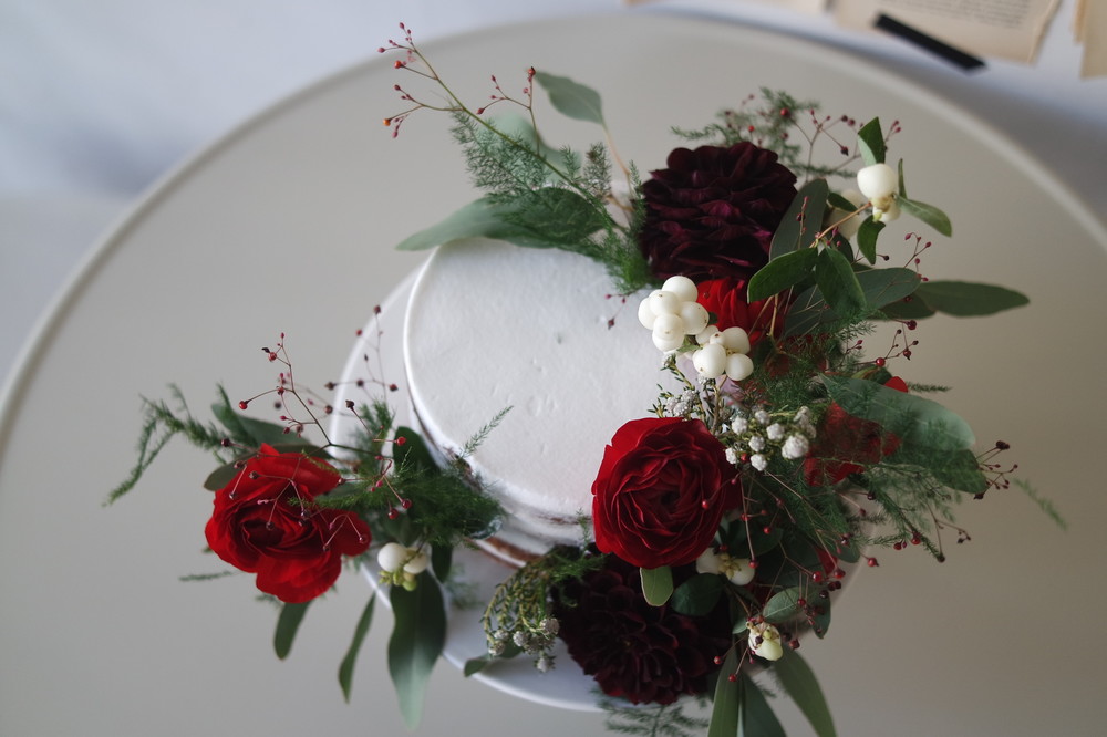 테이블 위의 달콤한 크리스마스 소확행 '크리스마스 플라워 케이크'