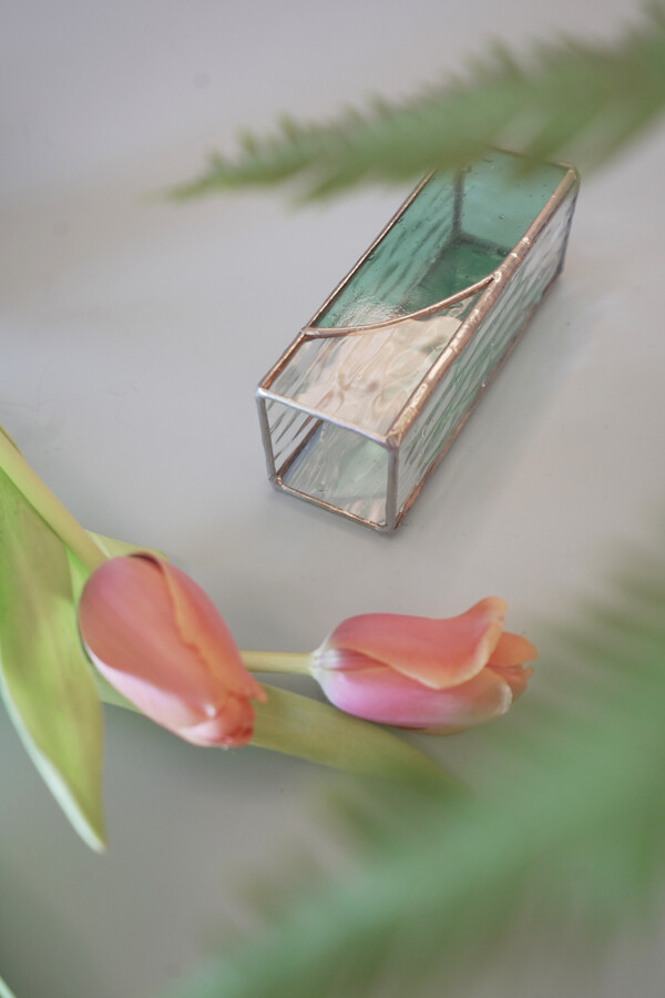 빛과 물이 투영되는 모습에 따라 다채로운 매력을 보여주는 스테인드글라스로 디자인된 화병에 꽃을 담고, 물을 매일 바꿔주는 습관을 통해 꽃을 환경친화적으로 즐기는 일상이 더욱 풍요로워지길 기대합니다.