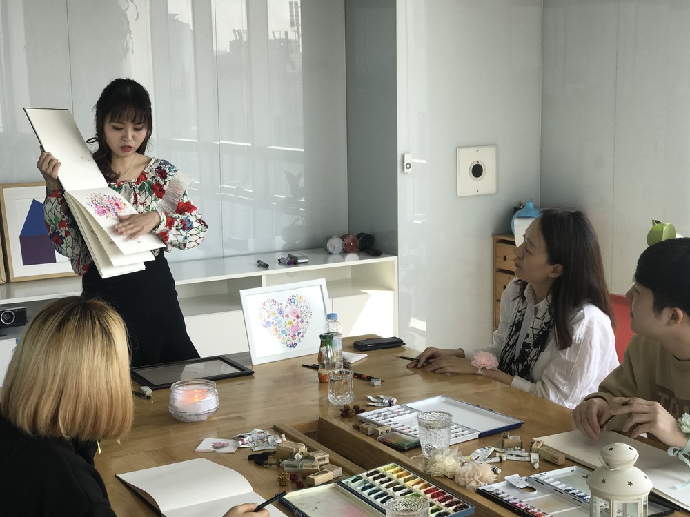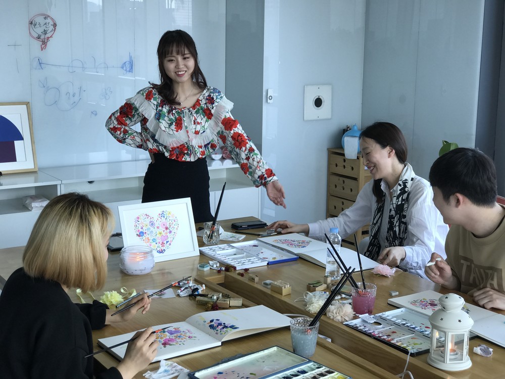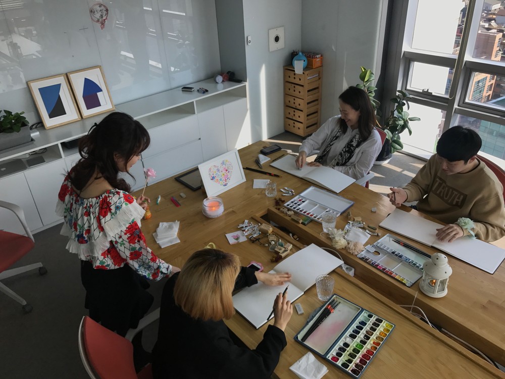 쇼룸의 꽃과 식물을 모티브 삼아 나만의 꽃 그림을 그리며